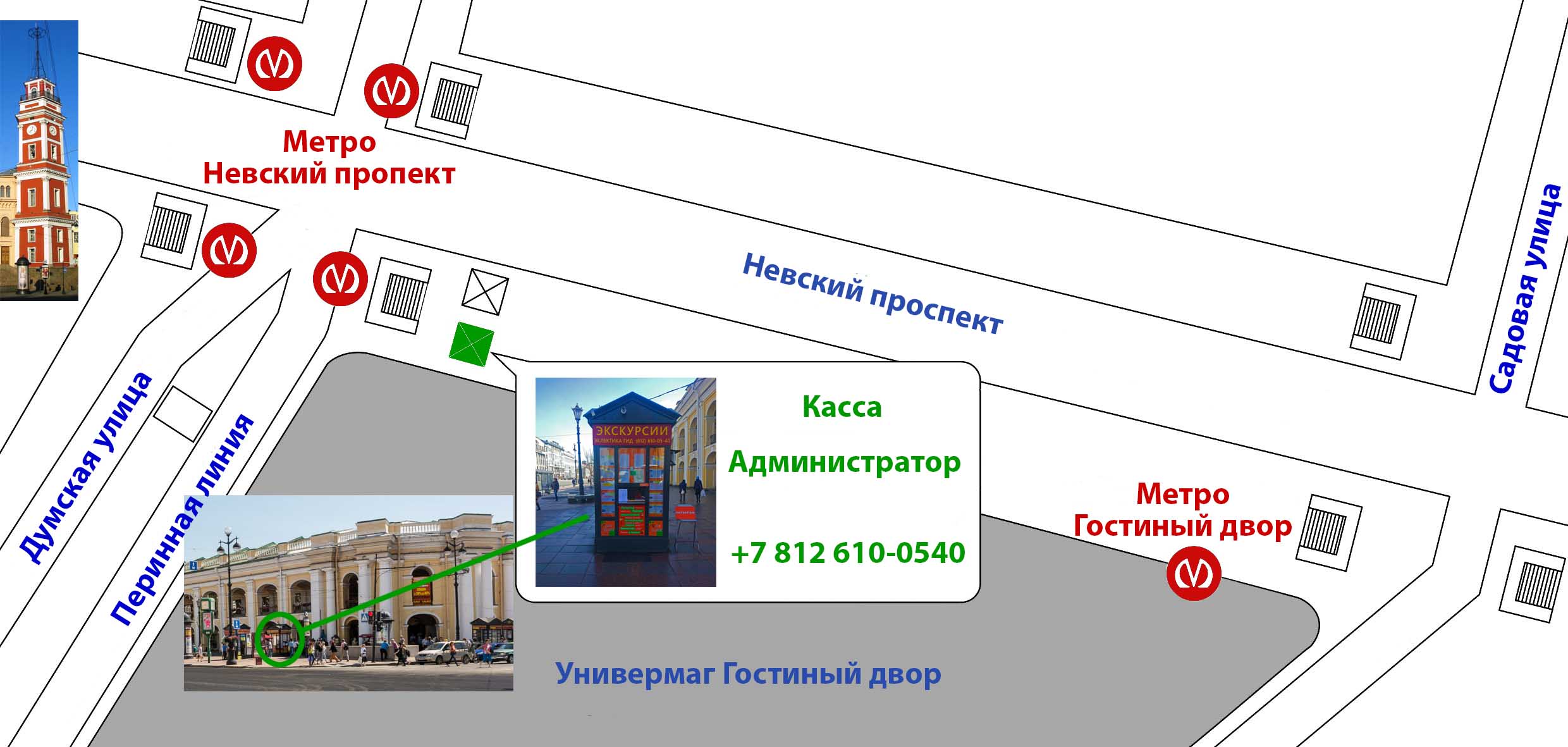 Все наши экскурсии отправляются от Гостиного Двора (Невский пр-кт, 35).