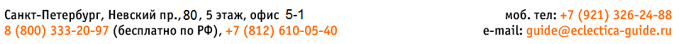В ОФИСЕ «ЭКЛЕКТИКА–ГИД» по адресу: Невский пр., д.80, 5 этаж, офис 5-1